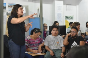 El taller se lleva adelante con la participación de una intérprete de lengua de señas, en el marco de un trabajo en conjunto con la Dirección de Discapacidad de la Municipalidad, con el objetivo de brindar una mejor experiencia e inclusión a los participantes del Programa Promover Igualdad de Oportunidades.
