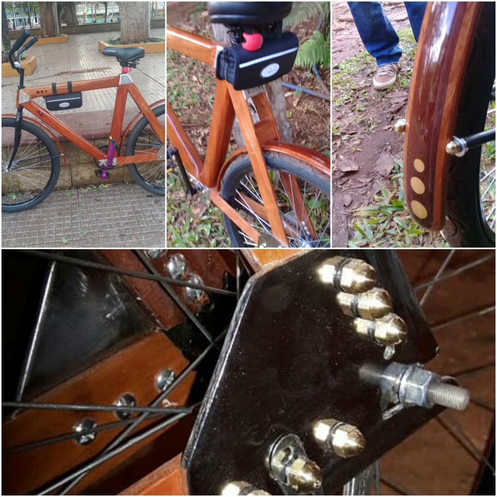 “Es una bici tipo playera para paseo y elegí la madera, no sólo por el artículo que leí y que me inspiró, sino porque la madera fue uno de los primeros materiales nobles que el hombre comenzó a usar: los carros eran de madera y quise volver a las raíces”, justificó antes de plantear que “todos deberíamos andar un poco más en bici”.