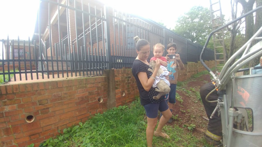 Abajo esperaban la dueña de la gatita, Vanesa Sauer junto a su pequeño hijo en brazos. Sauer contó que Lola había desaparecido hacía tres días y que su hijo Valentín estuvo con fiebre, angustiado por la falta de la mascota. De agradecimiento y gratitud fueron las palabras de la madre hacia los Bomberos Voluntarios que rescataron a la mascota.