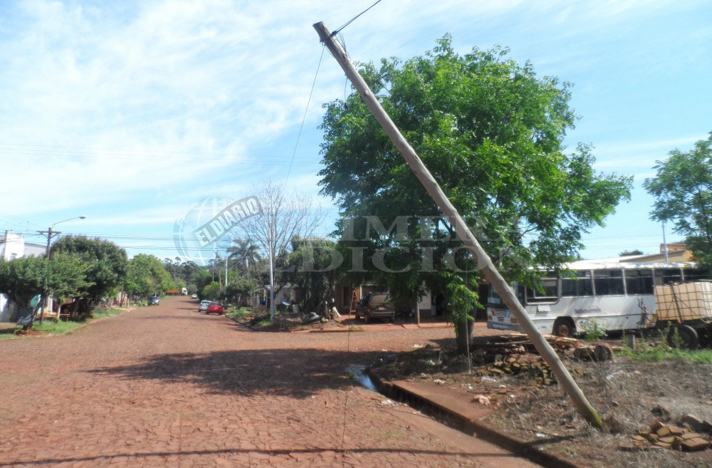El último temporal en la Zona Sur de la provincia dejó como consecuencia varios postes caídos en varios sectores de Apóstoles, pero también otros a punto de hacerlo que todavía las autoridades no repararon o reemplazaron.