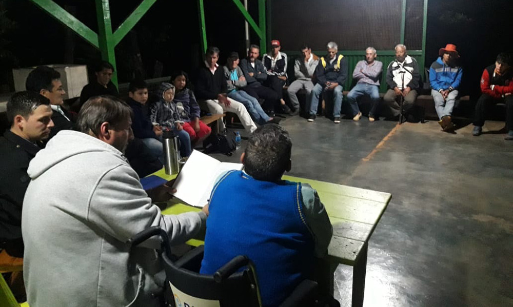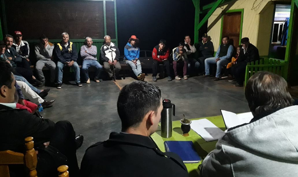 En la reunión que se realizó en Colonia Terciado Paraíso estuvieron presentes el intendente de San Pedro, Miguel Ángel Dos Santos, referentes de la Policía de la Provincia y vecinos de distintos barrios y colonias de la localidad.