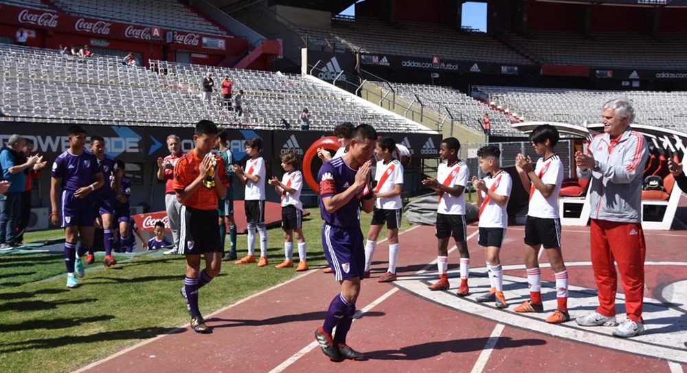 El evento significó un partido en cancha reducida contra un equipo juvenil de las Inferiores de River, que simbólicamente terminó en un empate 3-3.