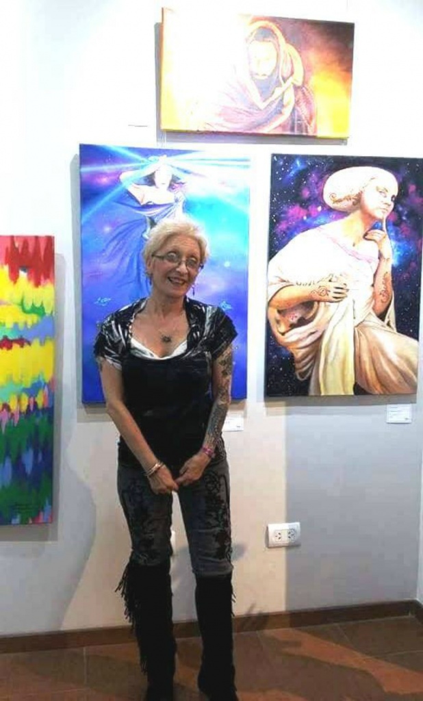 Médica Cardióloga. Que sigue ejerciendo en consultorio. Y durante su vida profesional hizo alta complejidad. Lease UTI UCo. Ambulancias, emergencias en sala de guardia. Una vida entera dedicada a la salud, su edad es un misterio como lo que intenta reflejar en sus pinturas.