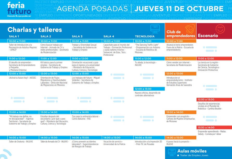 Con decenas de disertaciones, talleres prácticos y presentaciones de experiencias locales exitosas, la capital misionera albergará esta semana un espacio para que los jóvenes -y no tanto- de la tierra colorada incorporen o potencien el deseo de aprender, crecer, capacitarse y emprender con vistas a una inserción laboral por vías tradicionales o mediante los nuevos campos que se abren en la “era millennial”.