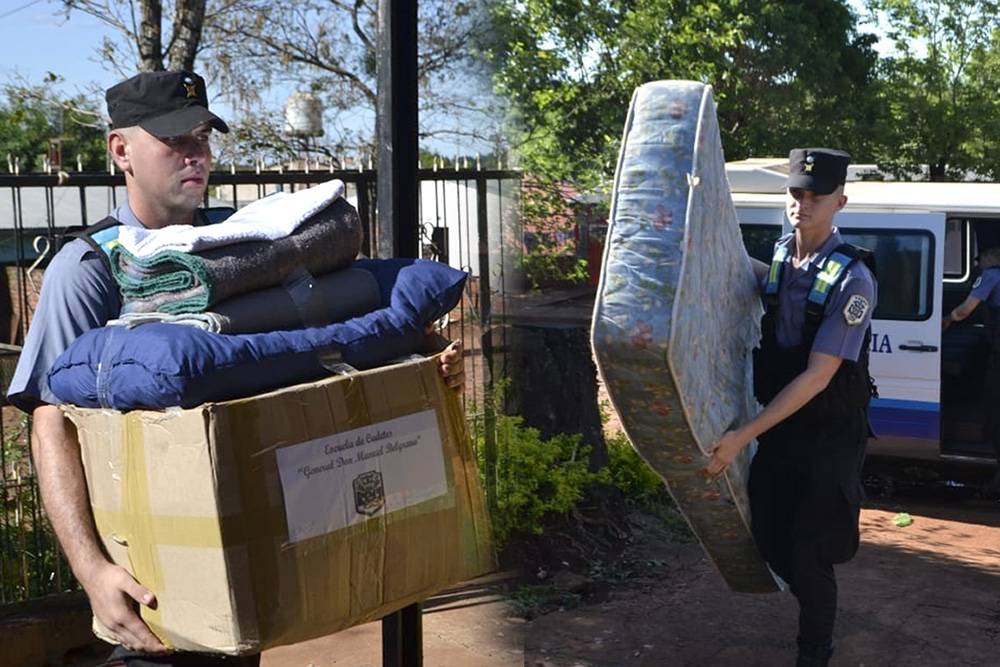 Además de alimentos, colchones y  prendas de vestir recolectadas en las últimas horas en la Comisaría 7ª, los cadetes en representación de la Policía se pusieron a total disposición de Mirian Cácere, madre de Luzmila y tía de Tatiana, las pequeñas fallecidas en el siniestro.