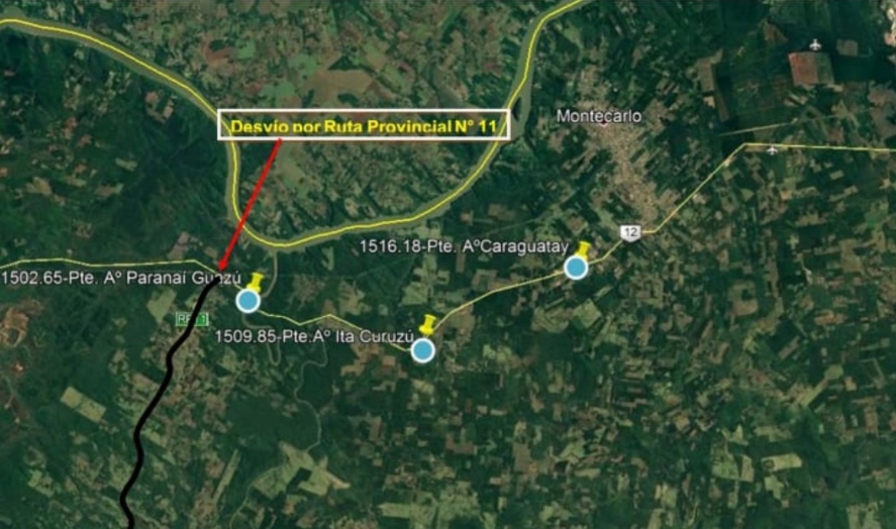 La Policía de Misiones, a través de la Dirección General de Seguridad Vial y Turismo, recordó que el tránsito por la  Nacional 12, entre El Alcázar y Montecarlo, estará cortado  donde habrá maniobras en tres puentes.