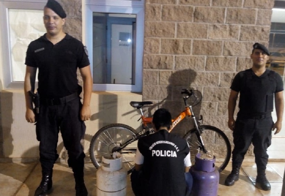 En un baldío la policía secuestró 1 bicicleta y 2 garrafas. Estos objetos fueron robados en horas de la tarde del jueves a María D. de su vivienda ubicada en el mencionado barrio.