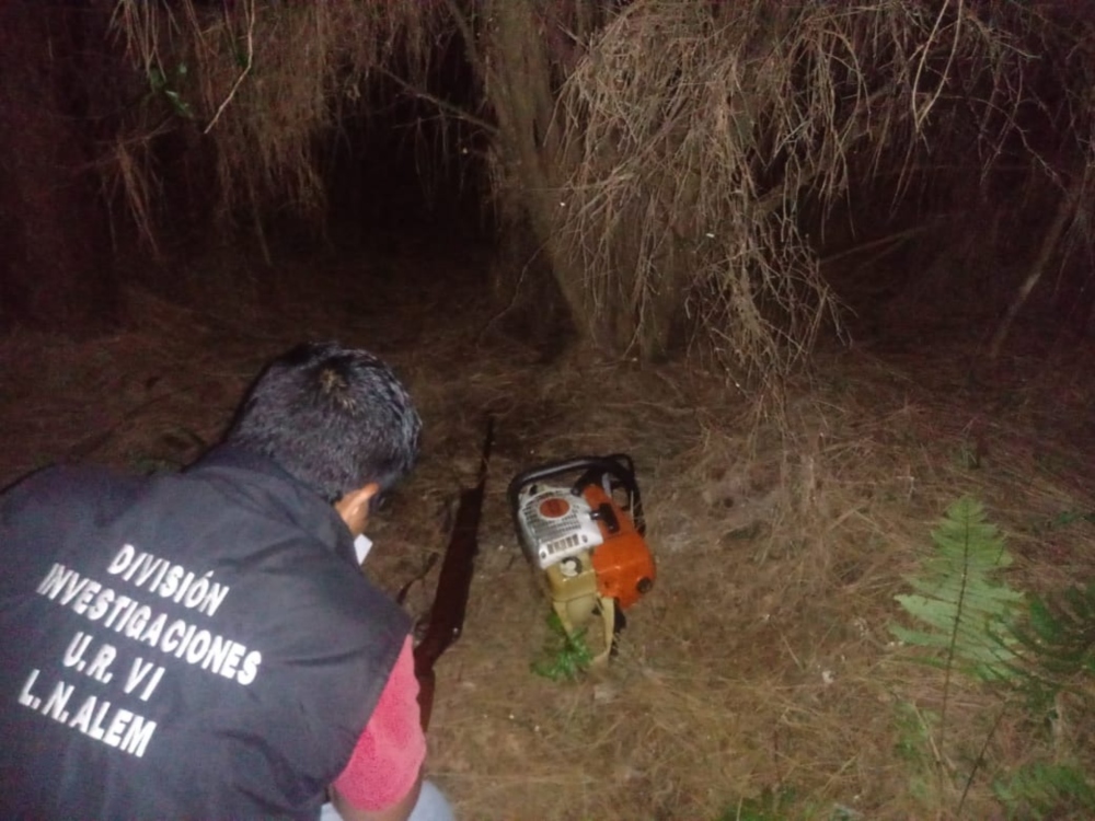Los elementos fueron encontrados por los efectivos de la División Investigaciones UR-VI durante un rastrillaje en medio de una plantación de pino.