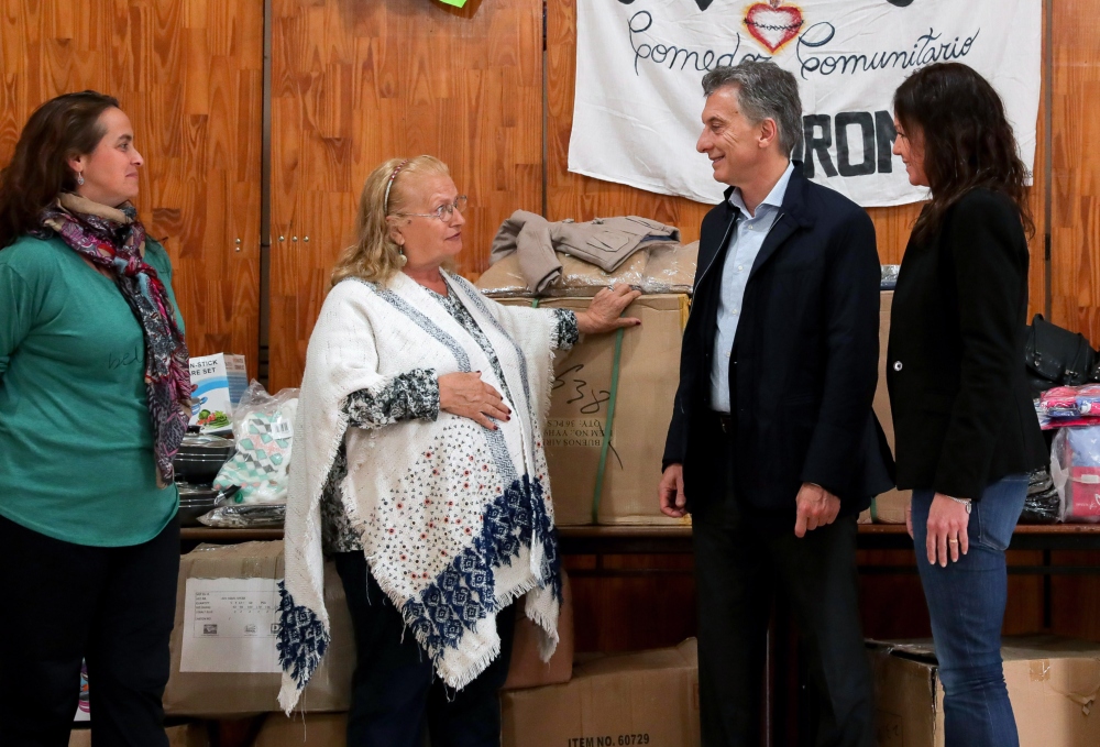 zzzznacp2 NOTICIAS ARGENTINAS BAIRES, OCTUBRE 24: El presidente Mauricio Macri visitó hoy el comedor Sagrado Corazón de Jesús, que recibió artículos de bazar, librería y ropa, mercadería recuperada por el Gobierno de contenedores que proviene del contrabando, en el partido bonaerense de Morón, donde estuvo acompañado por la ministra de Salud y Desarrollo Social, Carolina Stanley, y también conversó con la referente del lugar, Angela Murano, y con el sacerdote de la capilla, padre Jacinto. Foto NA zzzz