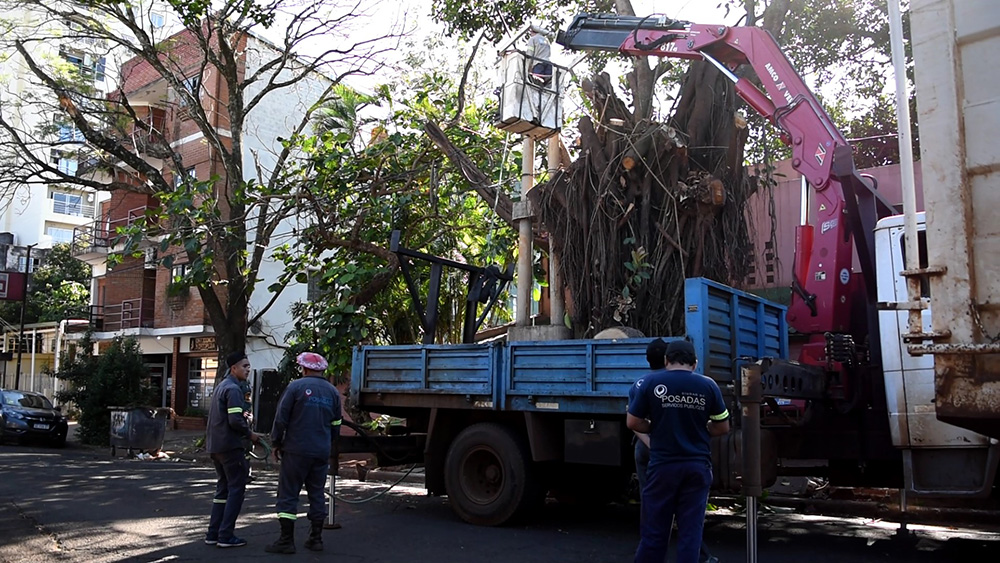 Los trabajos fueron realizados por el personal de las cuadrillas municipales, quienes en primer lugar extrajeron un chivato con peligro de caída en la intersección de Colón y Mitre. Luego, por pedido de un vecino, se dio inicio a la misma tarea en 25 de Mayo y Mitre con dos gomeros, una especie que tiene restricciones en su tala.