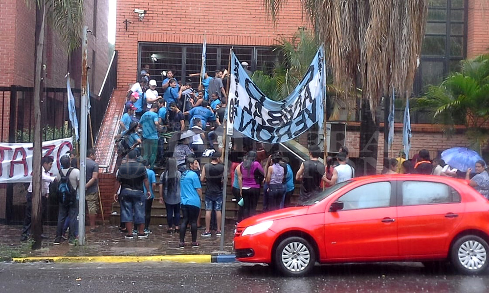 La columna marchó desde la plaza San Martín hacia la Municipalidad de Posadas para entregar un petitorio exigiendo a las autoridades que se retrotraiga la suba en el boleto.