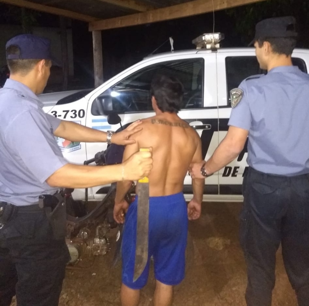 Según se informó Carlos V. siguió insultando y exhibía un cuchillo de grandes dimensiones. Finalmente fue aprehendido y alojado en la comisaría de Garupá
