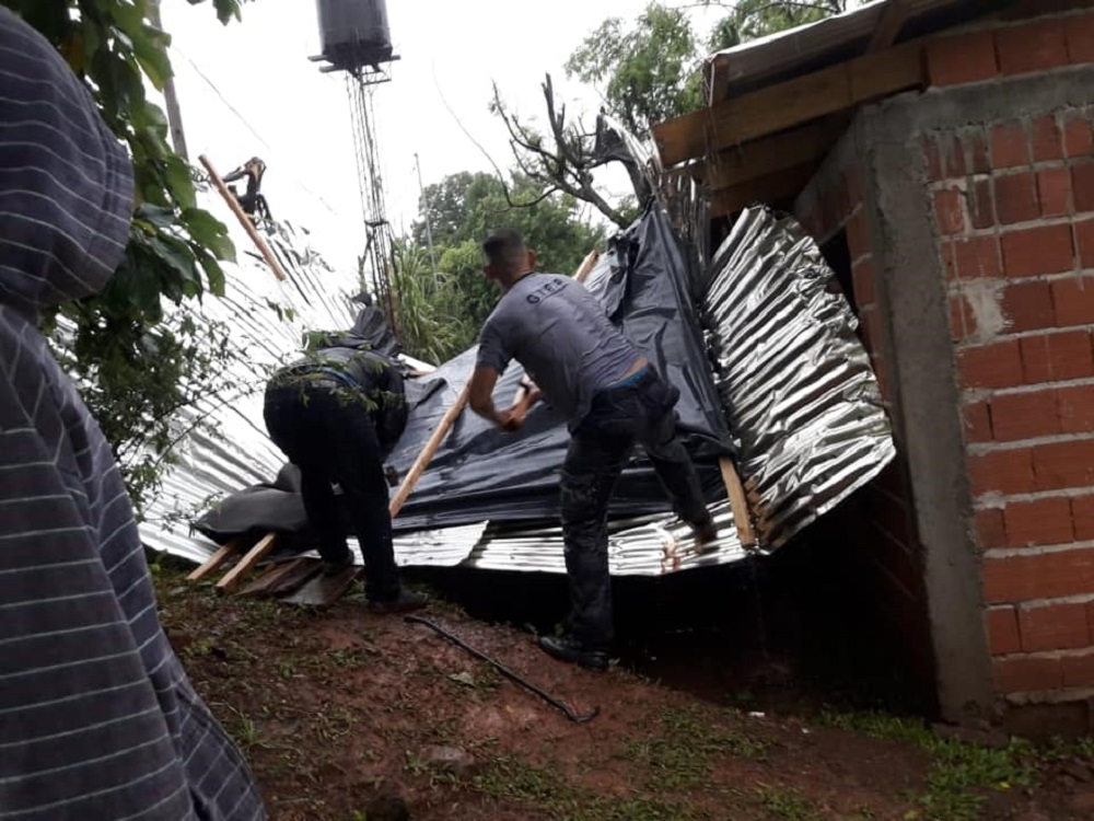 En San Vicente, a raíz de las inclemencias climáticas registradas en la zona, en Barrio Heich se produjo voladura de techo de una vivienda de mampostería de 7×8 metros cuadrados, afectando a su ocupante y sus tres hijos menores de entre 3 y 8 años.