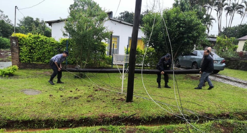 Además, cayeron postes de red telefónica y luz en Candelaria, Alem y Oberá, localidad donde la circulación de vehículos también quedó restringida por la caída de árboles.