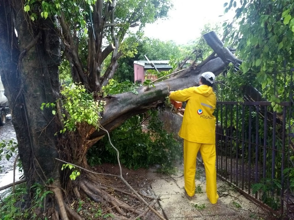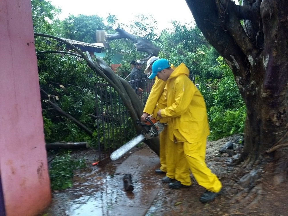 En el lugar, el equipo de la Dirección de Emergencia Social de la Municipalidad de Posadas intervino para despejar los escombros de las ramas que debieron ser cortadas para permitir el tránsito vecinal.