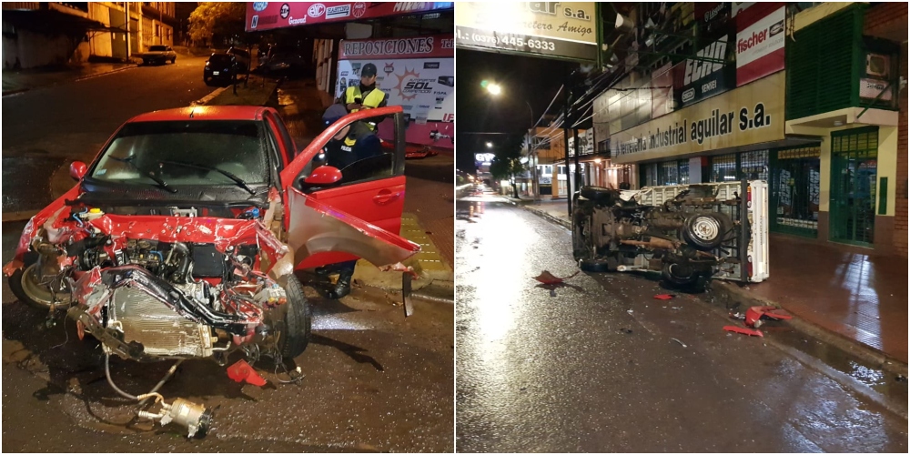 Un automóvil FIAT Siena circulaba por la avenida Uruguay cuando por causas que se tratan de establecer impactó contra un vehículo utilitario HYUNDAI que estaba estacionado frente a una ferretería.