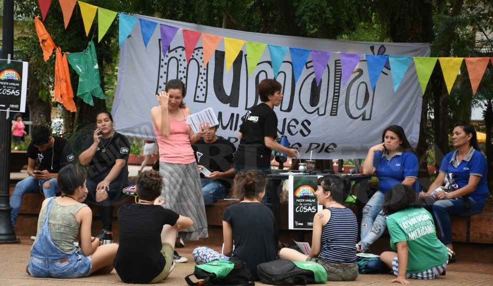 MuMaLa Misiones fue la organizadora de la jornada en la que se repartieron folletos informativos acerca de qué dice la ley, qué temáticas aborda y cuáles son los cambios propuestos. Todo fue en el marco de una movida nacional de Mujeres de la Matria Latinoamericana (MuMaLa) de “plazas multicolores por la aplicación de la Ley de Educación Sexual Integral en todo el país”.