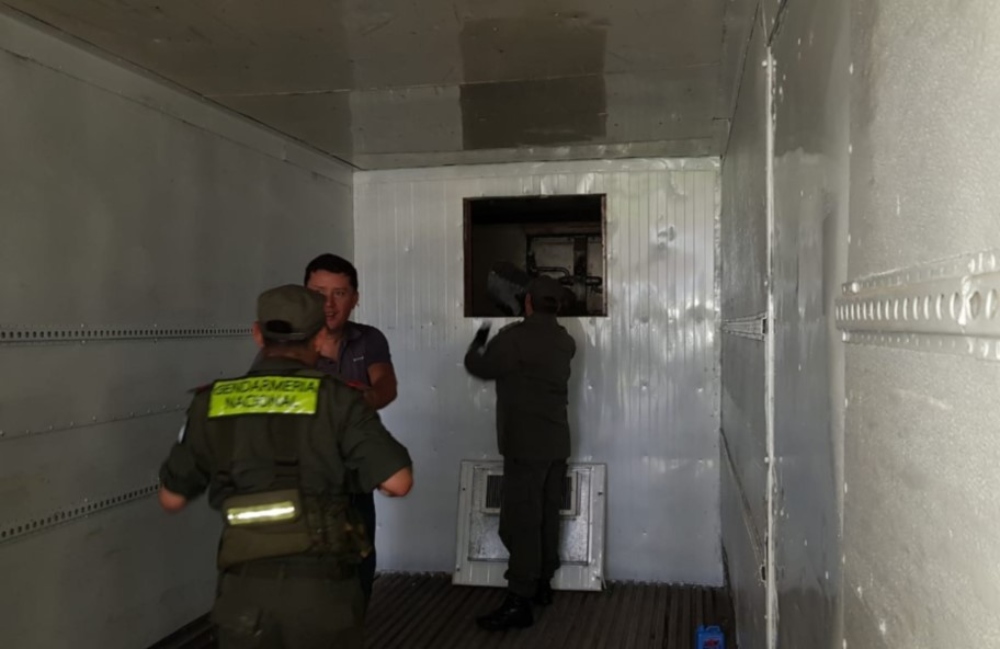 Sin embargo, el nerviosismo tanto del chofer como del joven que lo acompañaba -ambos serían de Misiones- derivó en un análisis más exhaustivo del vehículo. Rápidamente los uniformados descubrieron restos de pintura fresca y tornillos recién instalados en el acoplado, al parecer, donde va el equipo del aire.