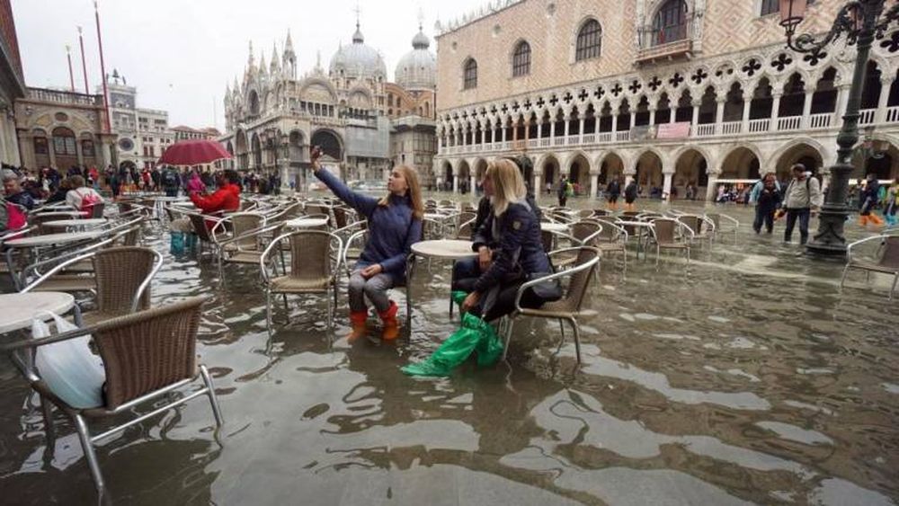 Salvini difundió esa foto, hecha en Venecia, en la que aparece sonriendo e informando a sus seguidores de que se dispone a visitar “las zonas golpeadas por los corrimientos de tierra y el temporal”, que ha afectado al país desde hace una semana.