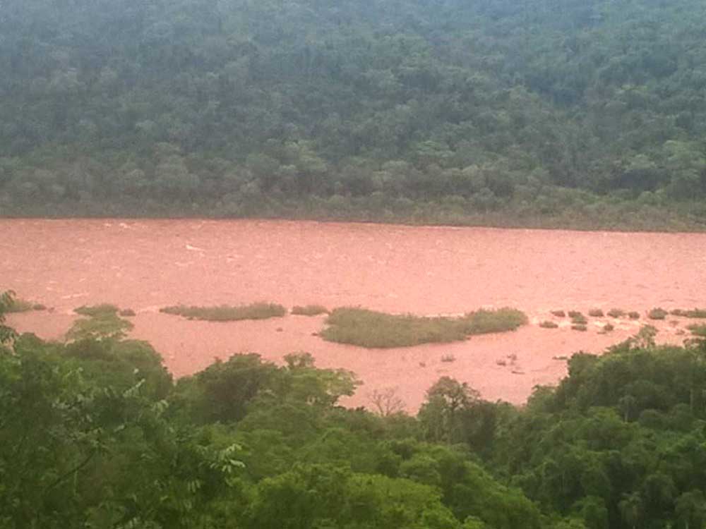 Así se ve el sector de los saltos del Moconá con la actual creciente del río Uruguay, la foto muestra el lugar  desde el mirador del sendero Chachi.