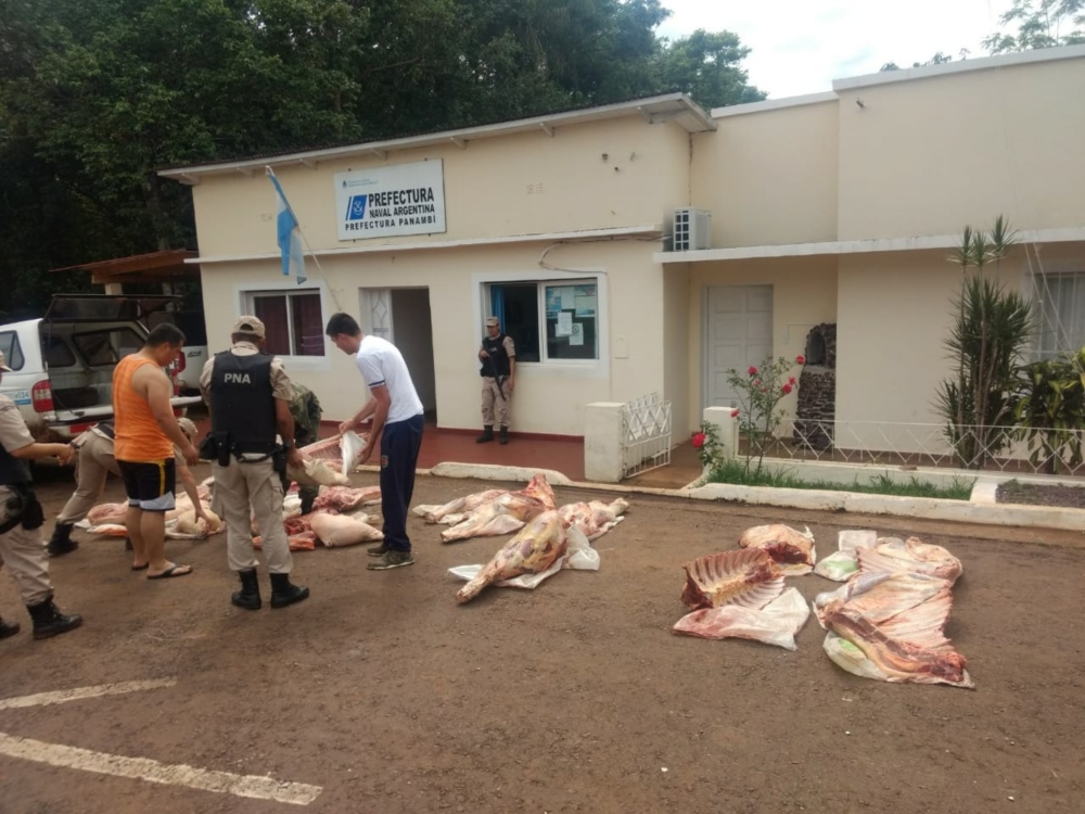 San Javier: llevaban casi media tonelada de carne en una canoa