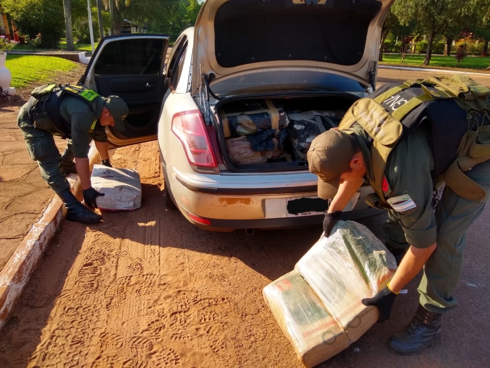 El Citroën C4 estaba cargado con bolsas de 25 kilogramos cada una de ladrillos de cannabis sativa prensada. La mayor cantidad del estupefaciente transitaba en el baúl del vehículo y se presume que se dirigía a un punto para ser acondicionado en otro embarque con destino a grandes puntos de Buenos Aires.
