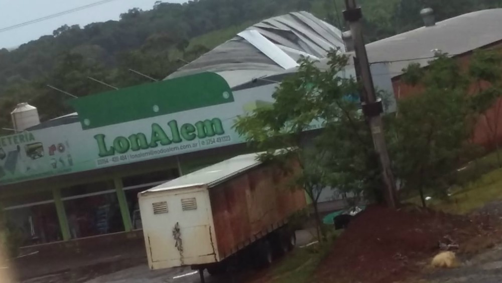 Hoy entre las 14.45 y las 15.15 se registró una tormenta con abundante lluvia y fuertes vientos en la zona de Alem provocando voladuras de techos y caída de árboles.