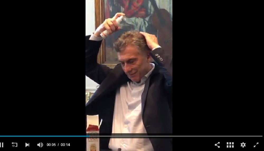 Las imágenes del líder del PRO utilizando el producto hecho a base de extracto de jarilla, un arbusto salvaje que crece en la Argentina, fueron difundidas a través de su cuenta de Instagram.