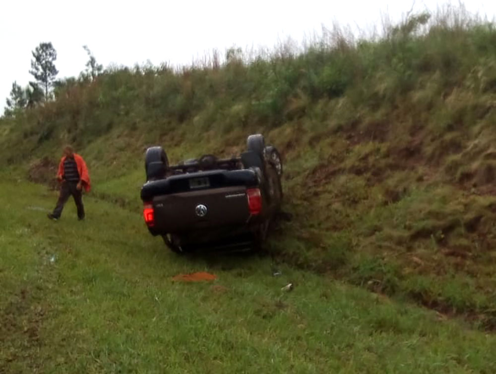 El vehículo terminó el recorrido en en posición invertida sobre la baquina contraria.