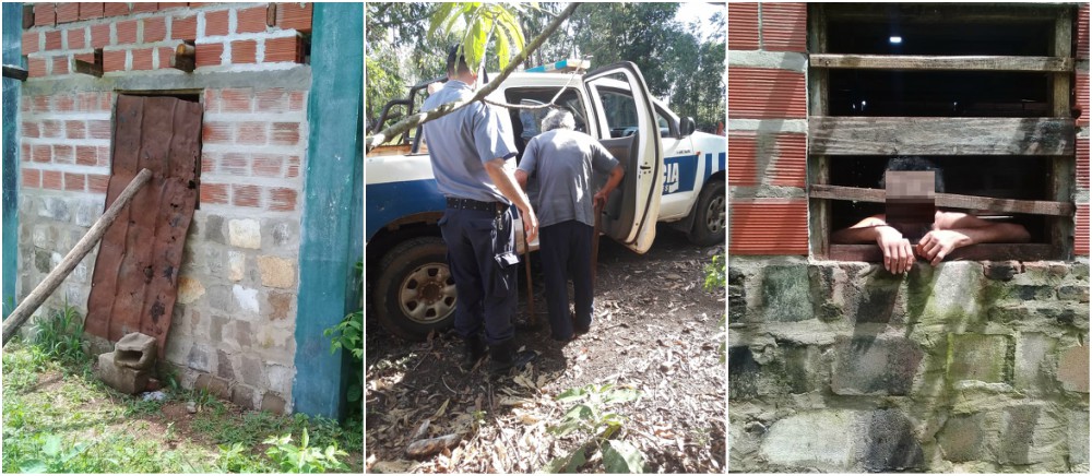 Luego de su detención se dispuso el allanamiento de su vivienda. Allí el personal policial no encontró pruebas del abigeato, en su lugar se encontraron con un hombre de 53 años encerrado en una precaria construcción bajo el tanque de agua de la vivienda. La misma, ubicada en la parte posterior del inmueble, tenía techo de lona negra con una ventana con maderas clavadas en forma de reja y otras dos ventanas obstruidas desde afuera. La puerta de machimbre tenía dos trabas también del lado posterior. Adentro, el hombre de 53 años se encontraba desnudo, con signos de bajo peso, malestar general y sin ningún tipo de documentación.