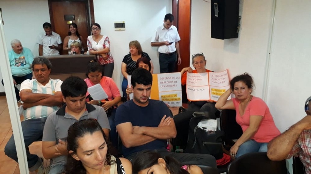 Integrantes de diferentes organizaciones sociales presenciaron la sesión, incluso intervenieron de manera enérgica en varias ocasiones. En una de ellas, interrumpieron al presidente, Juan José Raynoldi, que solicitó un cuarto intermedio. Cada vez que intentó hablar fue interrumpido por los presentes. Una vez que pudo, Raynoldi defendió el proyecto e indicó que “el Concejo repudia las declaraciones del Intendente”, pero pidió “a las organizaciones sociales que siempre que se hagan eco de este tipo de reclamos lo midan con la misma vara”.