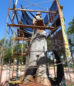 El eucalipto que hoy se rinde su madera al frío hierro de un cincel fue en alguna oportunidad un árbol frondoso. Un error lo condenó a la muerte cuando se lo podó indiscriminadamente. Poco faltó para que su tronco también sea extirpado de la tierra. Felizmente un grupo de vecinos alertó a las autoridades y se evitó.