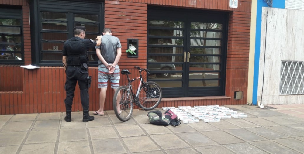 Fabián H. de 26 años, quedó detenido en la comisaría seccional Segunda, en tanto que los efectivos incautaron la bicicleta y unas bolsas con gruesas de cigarrillos sin aval aduanero.