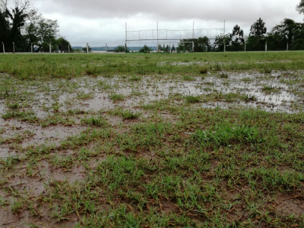 La intensa lluvia provocó el anegamiento de la cancha de La Picada, lo que provocó que la Liga lo reprograme para el lunes.