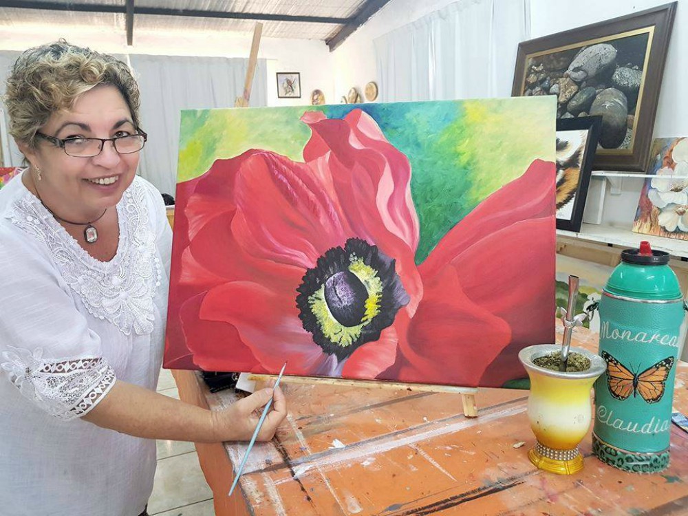 Sus ansias de pintar son tan grandes que las clases se extienden vía celular. Constantemente estamos en contacto haciendo seguimiento a la obra que está de turno. Me parece que nos estamos volviendo dependientes una de la otra. Si no contesto rápido, entonces llama. Si no atiendo, entonces viene. Yo aprovecho porque siempre hace falta alguien que cebe unos mates en el taller en los días que no le toca su clase.