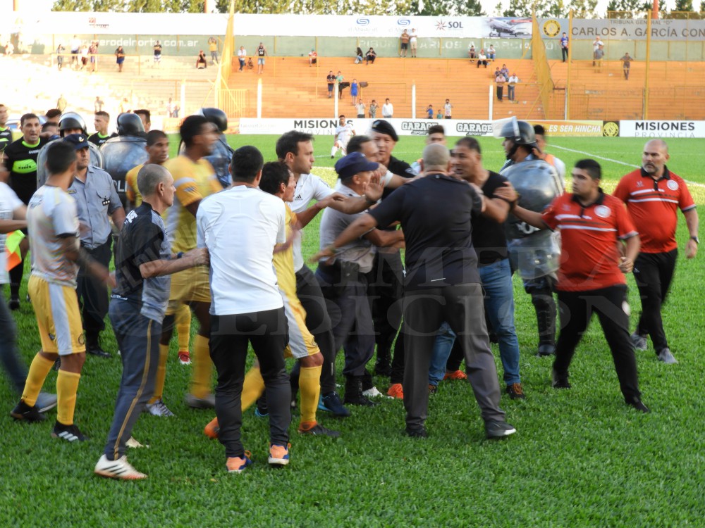 Sobre el final hubo un par de roces y cruces de palabras entre jugadores que derivó en una batalla campal. El saldo: cuatro expulsados.