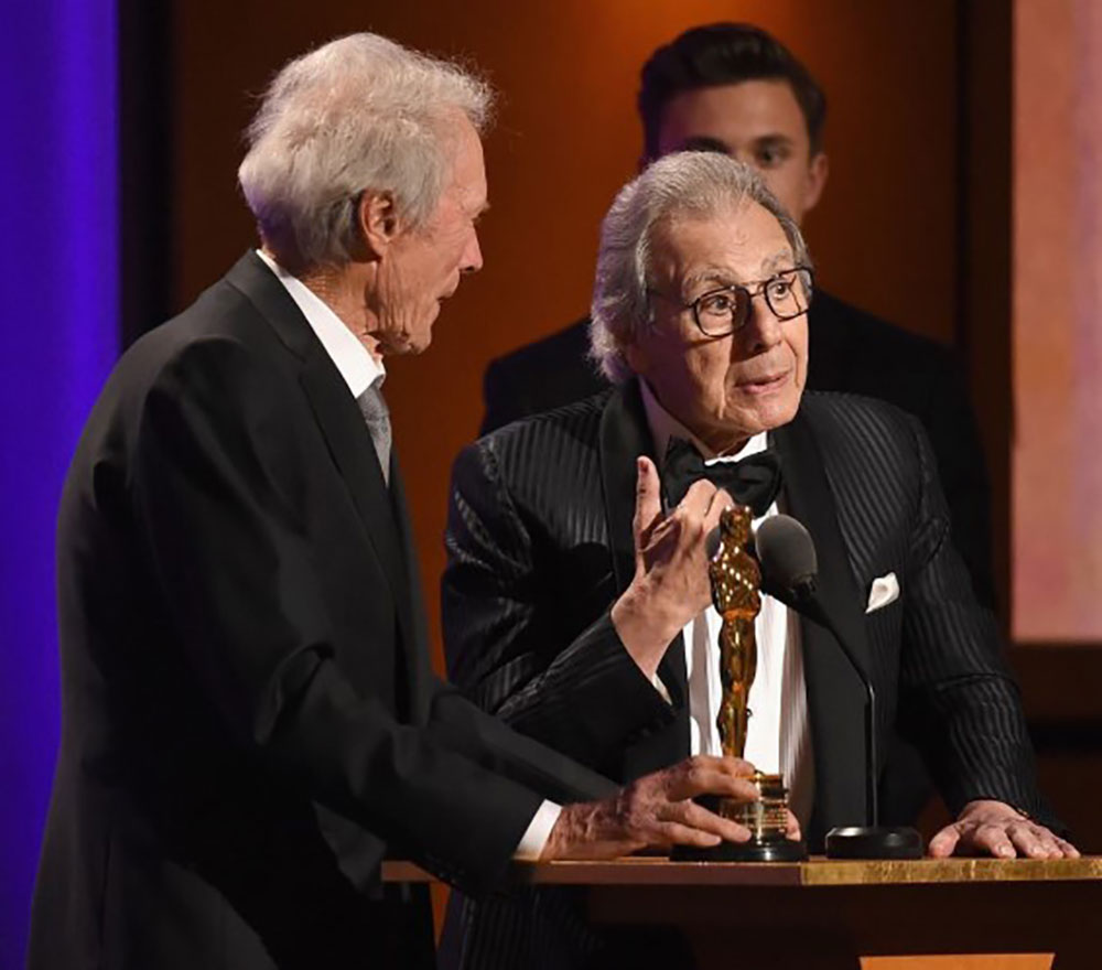 Recibió el Oscar de manos de Clint Eastwood, quien personificó a Harry el sucio, tras un diálogo algo surrealista entre ambos octogenarios.