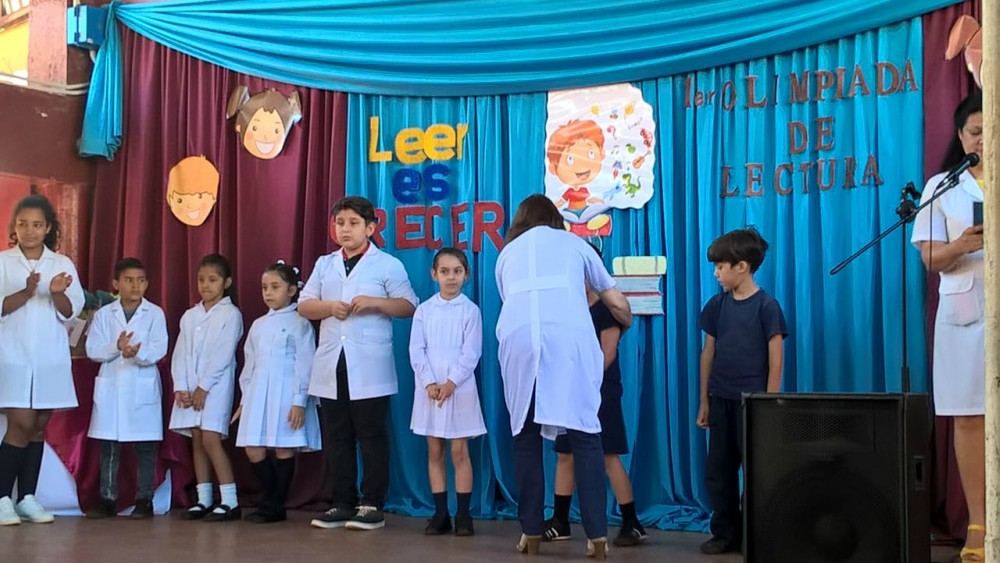 La jornada fue plena: en el inicio, desde las 7.30, todos los estudiantes, de primero a séptimo, se juntaron en las aulas bajo la coordinación de los docentes (de la casa e invitados) para leer, primeramente, en forma privada y luego pasar a hacerlo en el escenario mayor del patio. La actividad se organizó con el objetivo de incentivar a los niños “y vino a coronar una serie de actividades iniciadas en 2017”, dijo a PRIMERA EDICIÓN Susana Benítez, una de las maestras detrás de la organización.