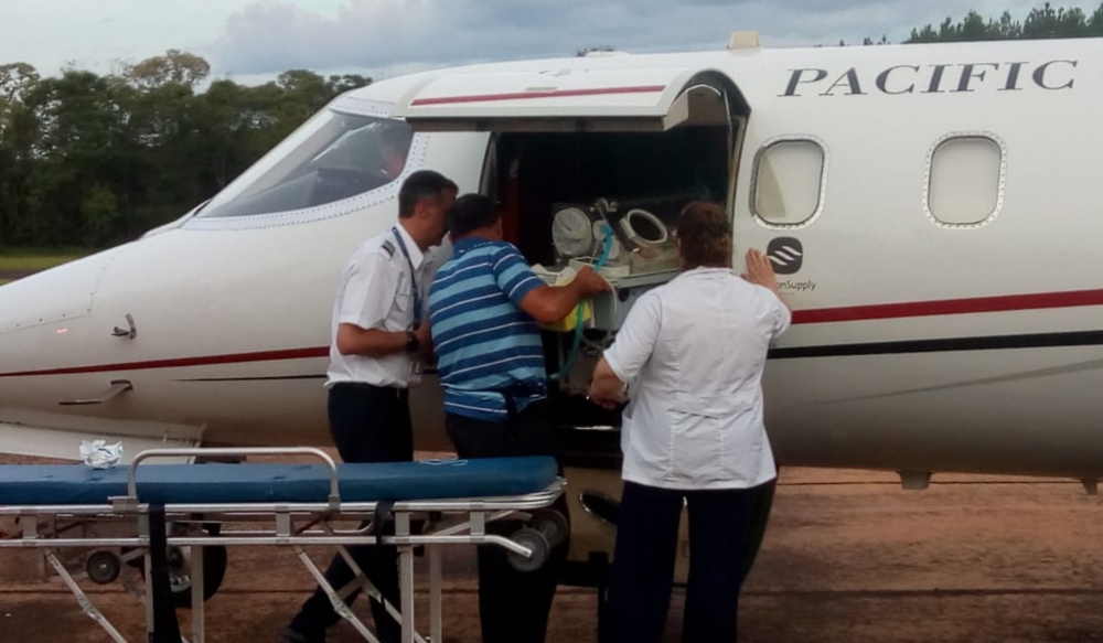 La beba trasladada de urgencia en un avión sanitario, este jueves a la tardecida, desde el aeropuerto de Eldorado hasta el Hospital Garrahan ya está siendo evaluada por los especialistas de ese centro de referencia para su inmediata intervención quirúrgica. La recién nacida presenta un cuadro de comunicación intraventricular, coartación de aorta e hipertensión pulmonar.
