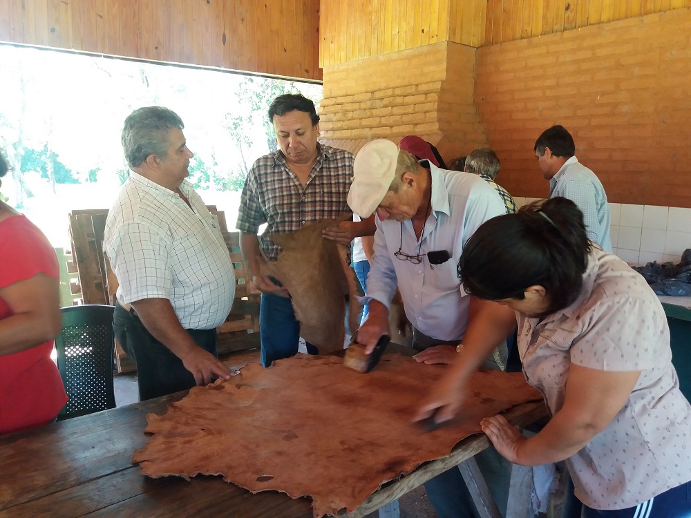 De su lado, Marina Sosa, productora y diseñadora de indumentarias, adelantó que va a producir chalecos y utilidades de marroquinería con una visión regional. Ella es de Cerro Corá y contó en el curso que “antes sabíamos de esta posibilidad, ahora nosotras podemos hacerlo porque nos instruyeron desde la faena hasta el almacenamiento para no desaprovechar nada. Una linda experiencia y muy favorable para los que elegimos vivir en y del campo”. Edy Beuter, opinó que “es de gran ayuda porque con esto haremos un uso integral de los animales. El proceso no es difícil y los cueros son muy buscados en el mercado, con lo cual sumaremos otro ingreso a nuestra realidad”.