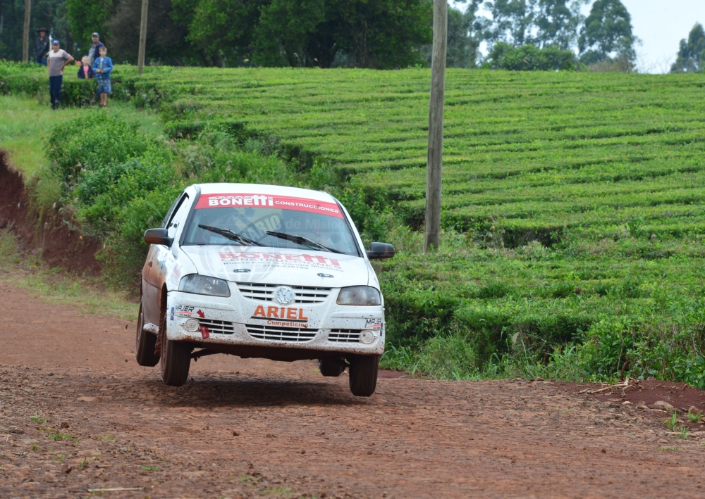 Luego de la intensa lluvia del viernes, la competencia era toda una incógnita en los caminos, pero el tramo Pindayty – Cruce Km 18 fue duro y nada más. En ese mismo tramo se vio el primer golpe de escena en lo deportivo, porque Raúl Fagundez-Rafa Ortega entraron pasados en una curva y terminaron en las plantaciones de té. De todas maneras, hoy buscarán mantener la ilusión. Por su parte, Ernesto Silvestri-Marcelo Cantero reaparecieron y buscan el milagro del campeonato. El cordobés domina la categoría que está caliente en su definición, ya que José Luis Stemalczuk se sumó a la lista de candidatos.