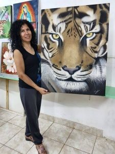 Descubrió en este tiempo que la pintura la complementa y quiere ir por más. Se está preparando para participar en diferentes exposiciones y está buscando su propia identidad en la pintura.
