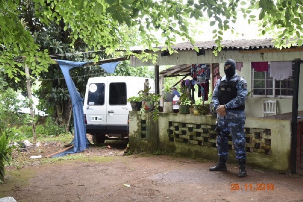 Efectivos de la Brigada de Investigaciones y la División Toxicomanía de la UR-9 arribaron a una vivienda ubicada en Calle México de la localidad de Jardín América, donde irrumpieron con la colaboración del Personal de la División Infantería, así mismo con la colaboración de Personal de Comisaria Local, la División Comando Radioeléctrico y Criminalística.