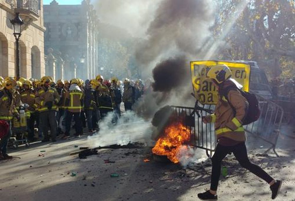 Cargas de los Mossos a los bomberos en la entrada al Parlament.