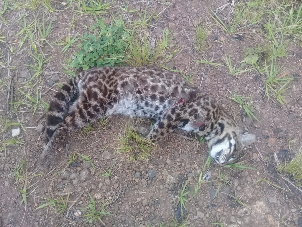 Un felino muy parecido al ocelote, que al parecer en horas de la madrugada o primeras horas de la mañana habría sido embestido por algún vehículo automotor.