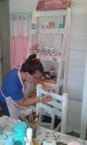 En su mismo espacio fue armando estantes con palets que consiguió y así sólo tiene que invertir en las pinturas. “Me gusta trabajar con decoupage, el vintage y Shabby chic por la utilización de colores pasteles que queda muy lindo”.