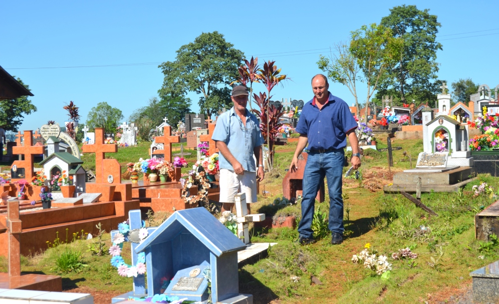 “No hay más lugar, a veces tenemos que enterrar uno arriba o muy cerca del otro por falta de espacio. En el terreno lindante que rodea al cementerio hay lugar; pero hay que limpiar. En total es una hectárea, y habrá un 30% más o menos que se puede ocupar, pero necesita limpieza, desmalezamiento, porque abajo hay muchas piedras. Hay que meter máquina, rellenar y arreglar”, insistió el sepulturero. “Me dijeron que el de Alicia está bien arreglado y debe ser porque el intendente Kramer vive ahí, y se preocupa más por ese cementerio que por éste. La gente ya no sabe dónde poner sus muertos; hemos llegado a colocar hasta tres en una fosa por falta de lugar”. Cada vez que muere una persona en Aurora, Grujer tiene que hacer malabares para encontrar el espacio donde cavar una fosa.