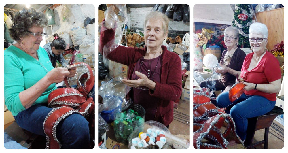 “Saben que si no estamos pueden dejar la bolsa afuera y después nos encargamos y si necesitamos alguna botella específica tenemos comercios con los que hablamos y ellos se encargan de hacer cadenas, igual que si necesitamos algún material en especial, también juntan otros cositas que saben que nos pueden resultar útiles, como frasquitos de medicamentos, el sello de los botellones de agua que la envasadora desecha, bolillas de desodorante, la gente va juntando cosas que sabe que en algún momento le vamos a dar uso, nosotras las recibimos, guardamos y nuestra imaginación nos lleva a buscarlas tarde o temprano”, apuntó Marta.