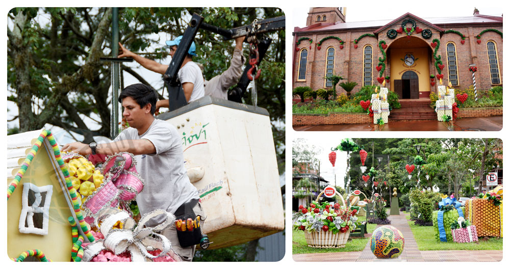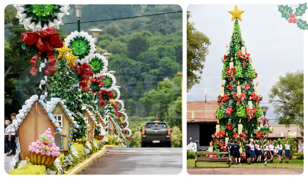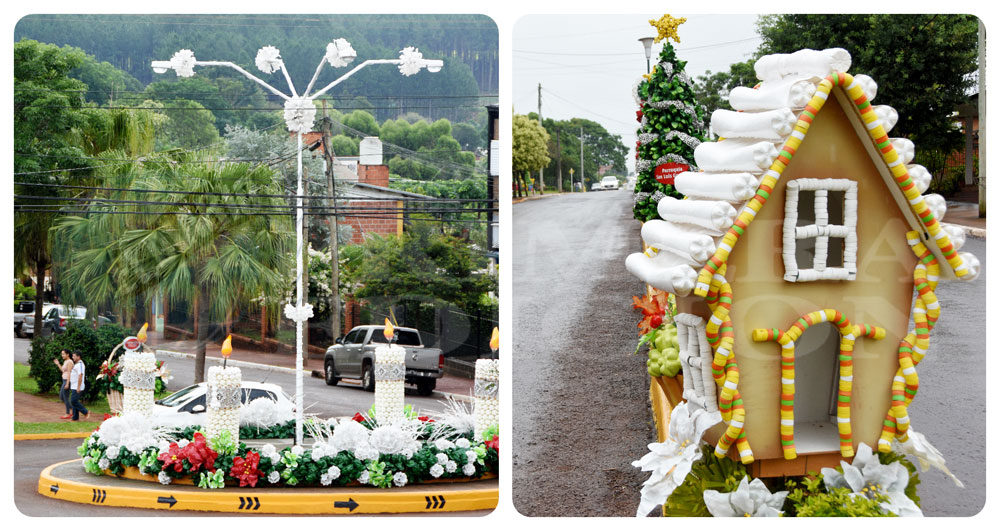 Es que para esta edición se ocuparon de intervenir unas setenta farolas, dispusieron de unos cuarenta árboles de distintos tipos y tamaños a lo largo del parque, obviamente no falta la imagen de Papá Noel, su trineo, un tren desbordante de regalos, el pesebre, treinta casitas, diez canastos, una treintena de regalos, “muchísimos ‘complejos escultóricos’ dispersos a lo largo y ancho de la ciudad”, dijo la decoradora y recordó son los compueblanos quienes acercan los materiales, a partir de la toma de conciencia de los vecinos y de municipios aledaños, como Puerto Rico y Ruiz de Montoya, por lo que ya no son necesarias las campañas de recolección.