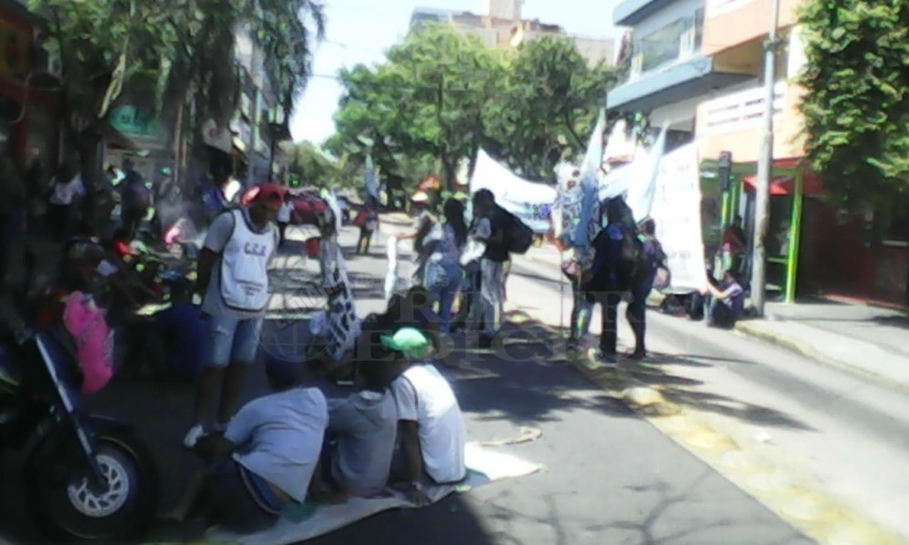 Familias tareferas de Oberá y Jardín América que llevan más de 16 días acampando en la plaza 9 de Julio decidieron trasladar la protesta frente a la delegación del Ministerio de Desarrollo Social de la Nación, cortando el tránsito por la calle Junín entre Sarmiento y Santa Fe.